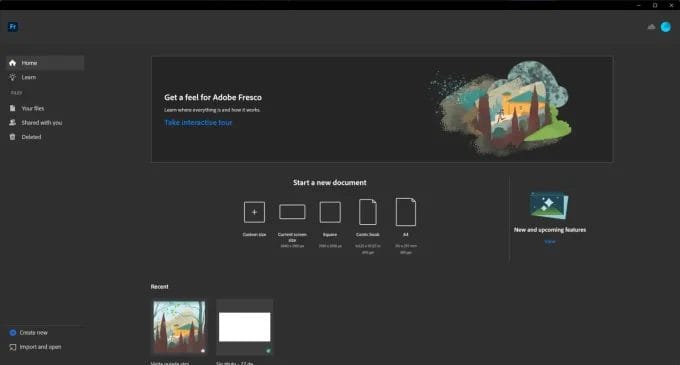 - تمت مشاركتها معك: إذا كانت هناك ملفات قد تم إرسالها إليك عبر البريد الإلكتروني يمكنك الوصول إليها بسهولة كبيرة عن طريق تنزيل برنامج Adobe Fresco على سطح المكتب كما يمكنك الوصول إليها في أي وقت تريده دون أي قيود مما يجعل هذا الخيار مساعدًا أثناء عملك على مشاريع مشتركة.