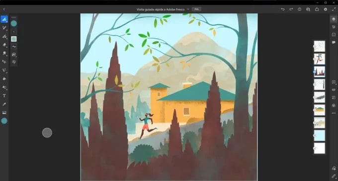 - واجهة فريدة: تعتبر واجهة Adobe Fresco المفعلة مدى الحياة واجهة استثنائية للغاية مما يجعلها متاحة لجميع المستخدمين للاستفادة منها بكل يسر ودون أي صعوبات كما أن الواجهة تناسب جميع الفئات لتسهيل استخدامها، يمكنك متابعة الموضوع للتعرف على الواجهة بشكل أعمق من خلال الشرح أدناه.